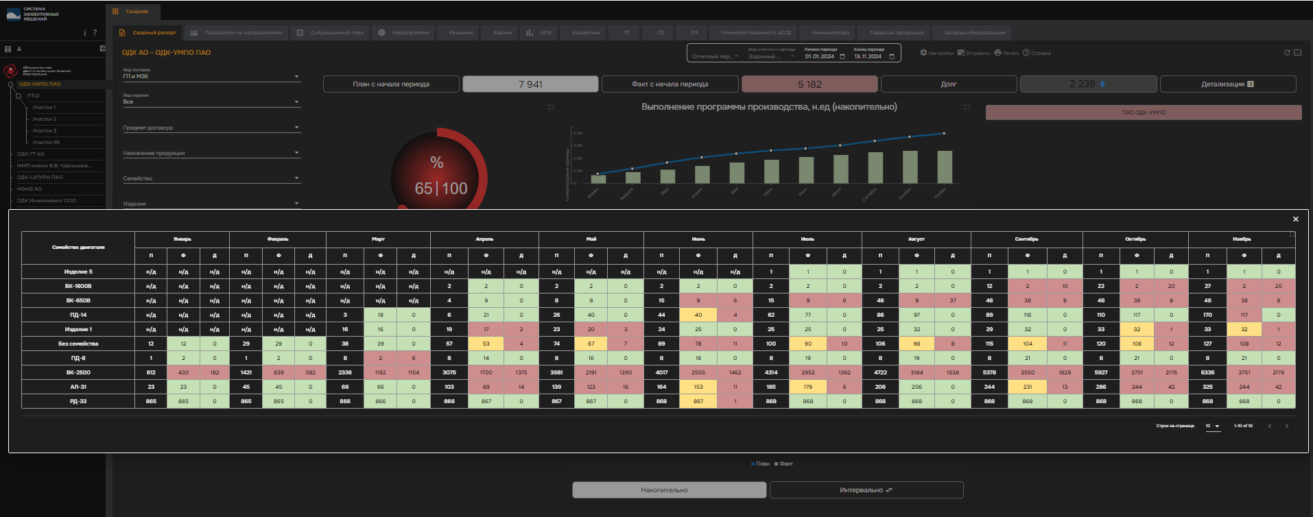 Детализация - на стартовой странице. Планы по семействам на основном графике и во всплывающей таблице - имеют разные значения